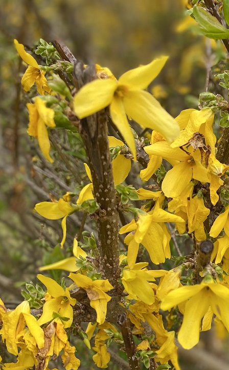 The more spring flowers I documented this week, the more hell-bent I became on finding a forsythia. My sister-in-law Mary Jane lives in an older neighborhood with mature trees; together we scoured her neighborhood, but the only forsythia still blooming was a little bedraggled. I’m afraid I missed my window on the forsythia, but the power of spring is knowing it will return. Next year I’ll notice the forsythia when she first emerges from the bleakness of winter, and I’ll more adequately capture her radiance.