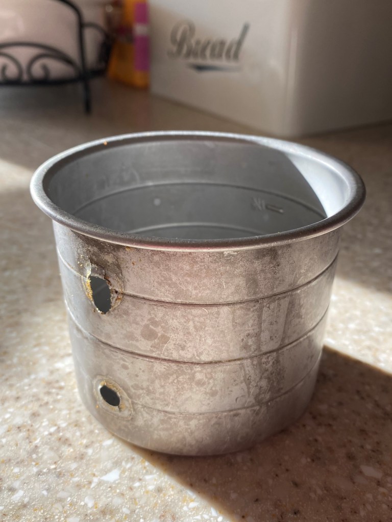 In its recent years the measuring cup, circa 1960, holding two cups at full capacity, had resided in our Tupperware bin of dry dog food. Reese came to eagerly anticipate the sound of aluminum raking across his kibble. Twice a day, the cup did its job, resting for the remainder of the day—for it is an old man.